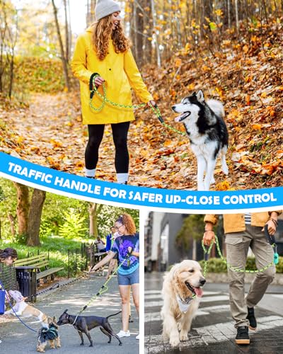 Traffic Handle Extra Control: 8 feet dog leash with traffic handle gives you ultimate up-close control in public, busy sidewalks or on tight walking trails, no more need wrapping the leash around your hand couple times and affecting blood circulation. More comfortable and safe.