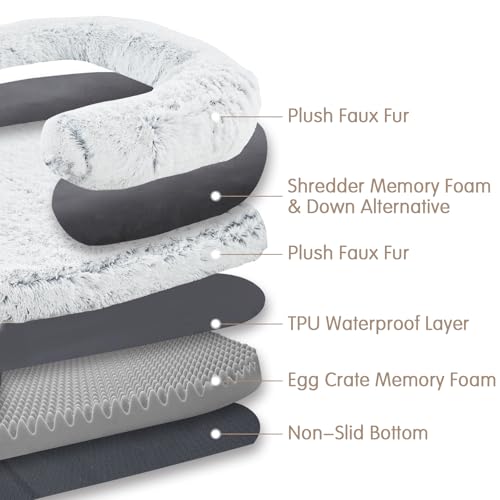 [Moms Embracing-like sense of security]: 74x43x9 IN Dog beds for Large dogs provide oversized surround, The thick bolster allows you to tuck your hands and feet into it, just like lying in the arms of mom, warm, peace of mind. Effectively relieve your anxiety.