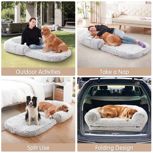 YAEM Human Dog Bed, 74″x44″x10″ Dog Beds for Large Dogs, Foldable Plush Washable Dog Bed for People Doze Off, Orthopedic Dog Beds for Humans Size Fits You and Pets – Grey