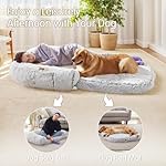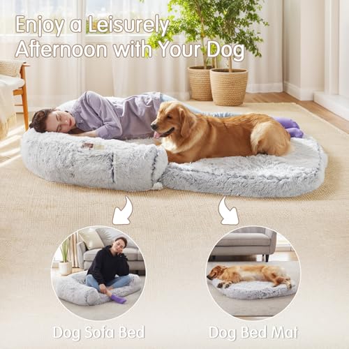 [Comfortable & Convenient]: Human dog bed uses premium faux fur plush as the bed cover fabric, which is soft, warm, breathable, and durable. In addition, we have added a storage pocket on the side so that you can put some small items when you lie down inside
