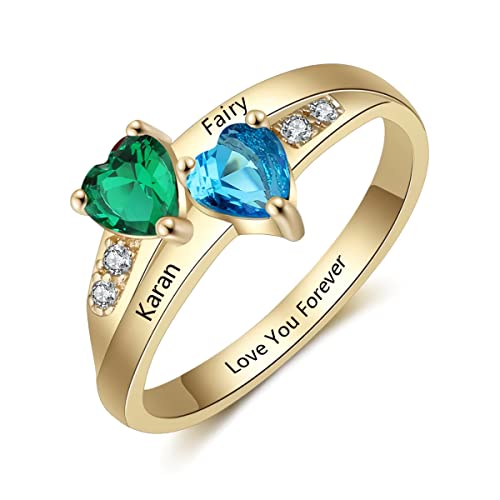 YDD 10K 14K 18K Solid Gold Birthstone Rings for Women Personalized Mothers Rings with 2-6 Birthstone Ring Engagement Anniversary Promise Ring Mother Daughter Ring