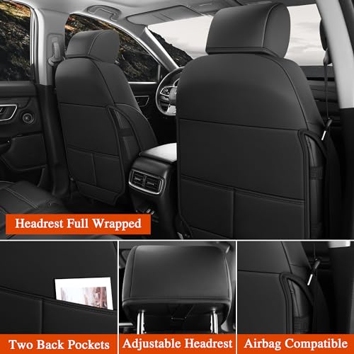 YGL Luxury Faux Leather Car Seat Covers Full Set,Non-Slip Seat Covers Custom Fit for Honda CRV, Waterproof Interior Seat Covers,Bucket Seat Protector Fit 2017-2023 CRV.(Black)