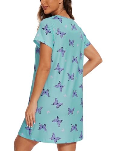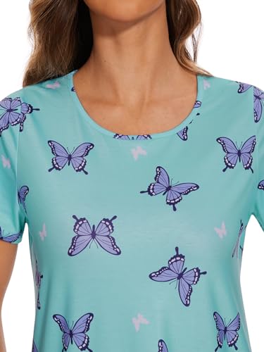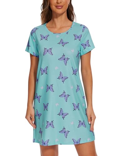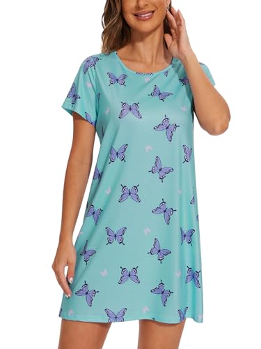 YIJIU Womens Nightgowns Short Sleeve Printed Nightshirts Casual Sleepwear Soft Sleepdress S-3XL