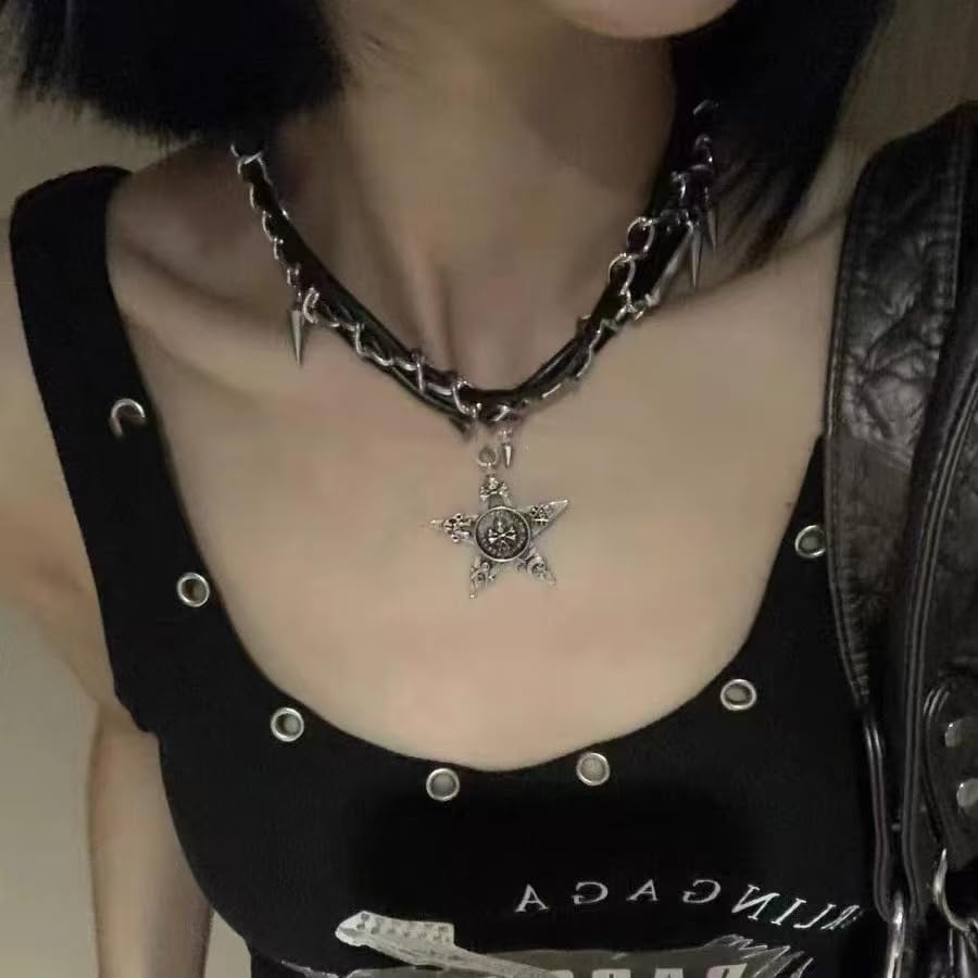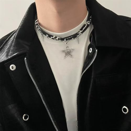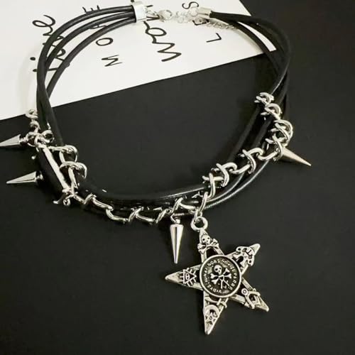 Yuoos Y2K Skull Star Vintage Necklace Punk Star Choker Rock Roll Layered Necklace for Women Men