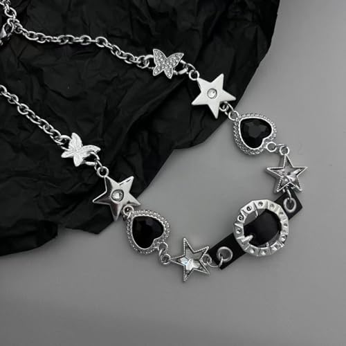 Yuoos Y2k Vintgae Black Heart Choker Punk Goth Star Leather Chain Necklace for Women Egirl