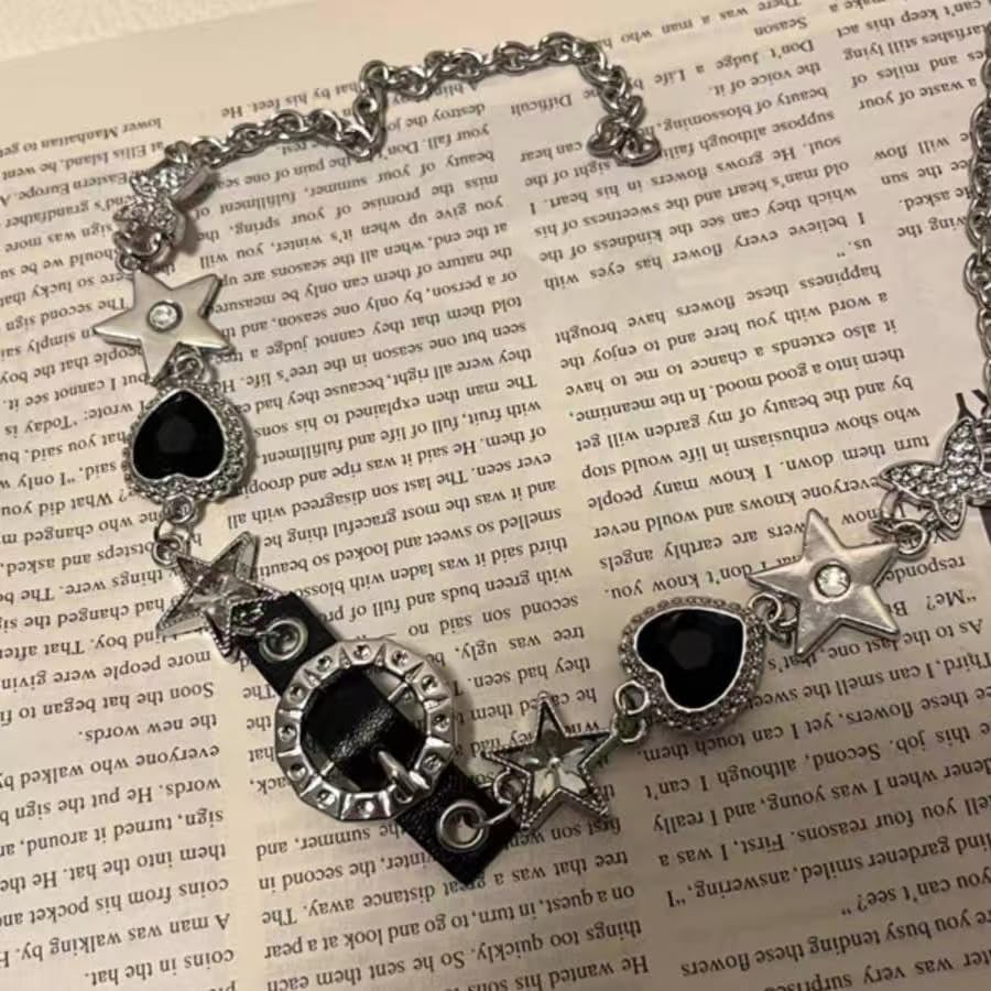 Step into the edgy and rebellious world of Y2K fashion with this vintage black heart choker necklace. Crafted with punk and goth influences, this statement piece features a sleek leather chain adorned with star charms, exuding an undeniably cool vibe. Perfect for channeling your inner egirl, this choker necklace adds an instant touch of attitude to any outfit. Layer it with other necklaces or wear it solo for a bold, eye-catching look. Embrace your individuality and let this necklace become your signature accessory.