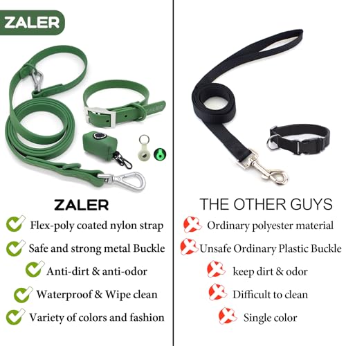 ZALER Dog Collar and Leash Set, Waterproof Adjustable Odor Proof Pet Collars Leashes for Large, Medium Small Dogs, Dog Leash with Airtag Dog Collar Holder and Dog Poop Bag Holder (XS, Green)