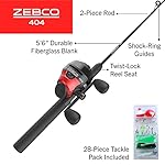 EASY-TO-USE: The Zebco 404 spincast reel and rod combo has been a mainstay with anglers for years. The combo features a 5-foot 6-inch 2-piece fishing pole, size 40 reel and a 28-piece tackle kit. You will be ready to hit the water with the patented no-tangle design and simple push-button mechanics for ease of use making this reel great for both beginners and experienced anglers