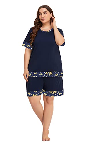 ZERDOCEAN Women’s Plus Size Soft Sleepwear Pajamas Set Short Sleeve Tops with Shorts Nightwear Pj Lounge Sets